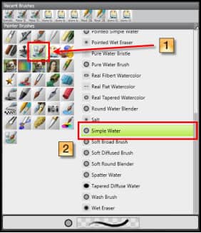 1. I use the Blenders/Grainy Water brush at 30% - 50% opacity to blend colors and edges together. This blender is one of my favorite interacts nicely with Paper texture.