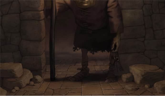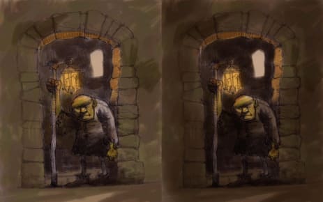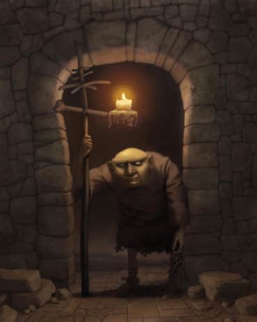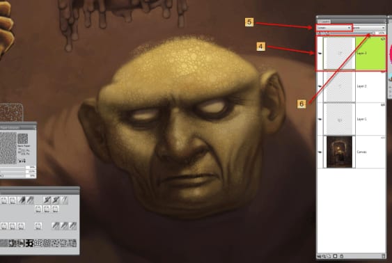 Finally, I will erase each layer to clean up any of the texture spilling over into the background. The doorman now has a nice grungy texture appropriate for any self-respecting dungeon dweller.