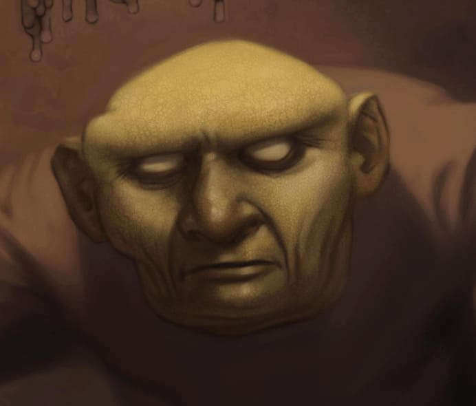 Since this doorman living in the dungeon probably would not have great skin I want to add some texture to his head and hands giving him more appropriate appearance.