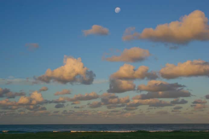 The details on the moon and highlights on the clouds are painted with small Real Round and Real Flat Opaque brushes (7-10 pixels). The Real Flat Opaque is an expressive brush that applies more opaque paint. A small Real Round brush (10–12 pixels) is used to paint brighter color on the breaking waves in the foreground. As details are finessed, brushwork is kept loose, and elements are suggested rather than rendered.