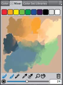 Next, try adding touches of new color sampled from another area of your image or from the Mixer panel, applying paint with the Real Flat or Real Round brushes. For interesting bristle textures, try the Real Fan Short or the Real Fan Soft brushes. For a tapered bristle brush that paints with a wet, oily feel, try the Real Tapered Bristle brush.