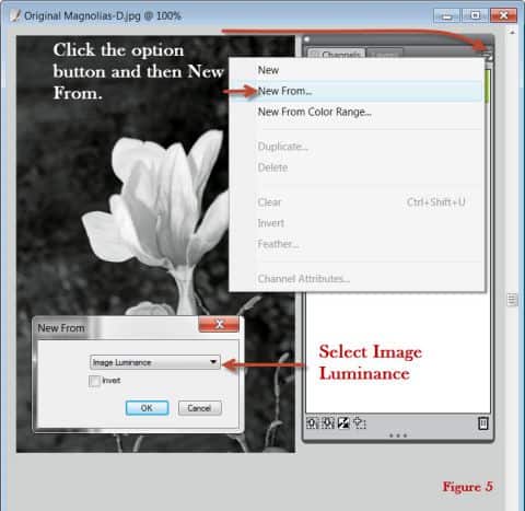 - In the New From dialog box, choose Image Luminance from the list box, and click OK. This will create an alpha channel based on the value of the image (see Figure 5).