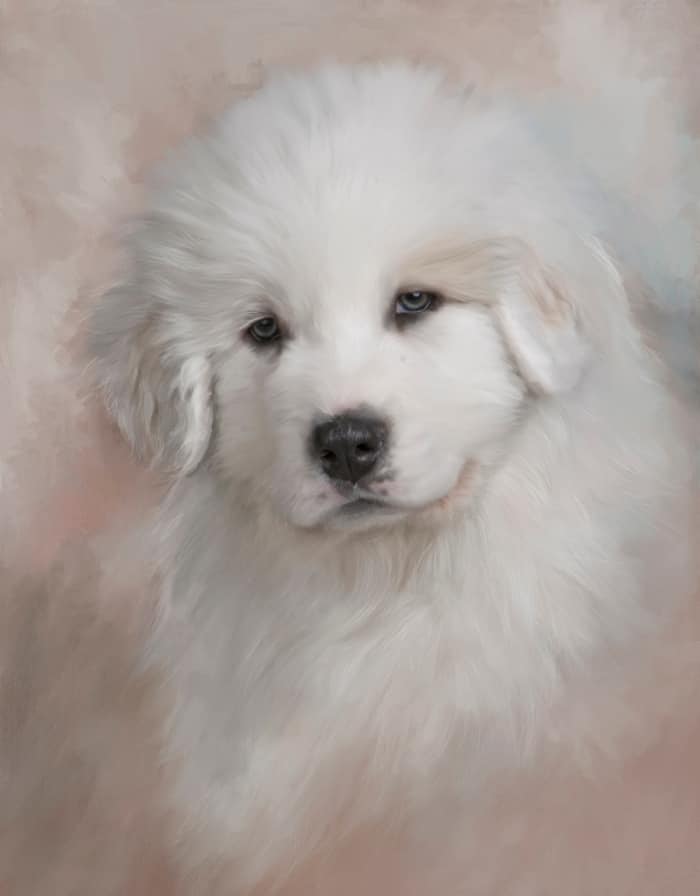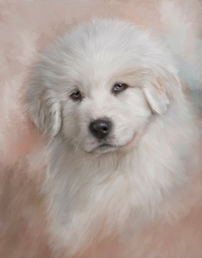 - At this stage, I apply Zoom To Fit by pressing Ctrl + 0 (Windows) or Command + 0 (Mac) to view the overall painting in the document window. NOTE: If I notice that I lost some of the edges between Brutus and the background, I use either the Oil (category) > Smeary Round (variant) brush to apply or blend colors or choose the Chalk and Crayons (category) > Square Chalk (variant) to build up areas that I may have over-blended.
