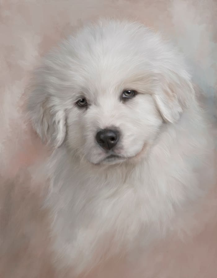 When I start painting, I find it easiest to work on the areas that are farthest away from my focal point, and then I work my way into the details. In this painting of Brutus, for example, my first step is to paint in the background, my next step is to block in Brutus using larger brush strokes, and then I build up the details by using smaller brushes. The details include painting in forms and completing the ears, nose, and eyes. My last step is to refine any lost edges between Brutus and the background.