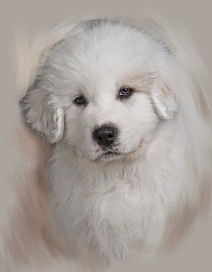 - Using the Smeary Round brush, I blend the hairs out into the background in the same direction as the hairs lay. Think of it as brushing long hair. I need to brush outward into the background.