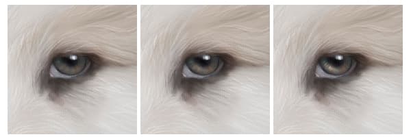NOTE: The Feature control sets the spacing between the bristles, which determines the level of “scratchiness” or “bristliness” of a painting. The feature changes according to the size of the area that you are painting. For example, smaller areas require a smaller feature value and larger areas require a larger feature value.