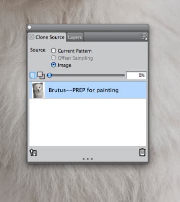 - In the Clone Source panel, I also adjust the Tracing Paper Opacity to 0%. I often toggle the tracing paper on and off to view my progress.