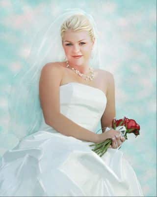 One popular technique found in painted portraits today is outlining the irises. To achieve this look, I paint the iris outline by picking up the color of the iris and then outlining the iris with a color that is a shade darker.