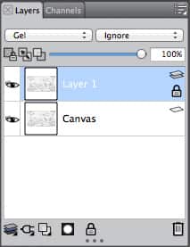Then, in the Layers window in our workspace, we click the button that looks like a lock to keep ourselves from accidentally drawing on it.