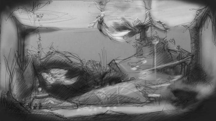 First, I'd like to point out that I don't really care how pretty the concepts are. At this stage, they're just sketches. The thing I'm most interested in is finding a story that I'm passionate about telling; beautiful brush strokes come later.
