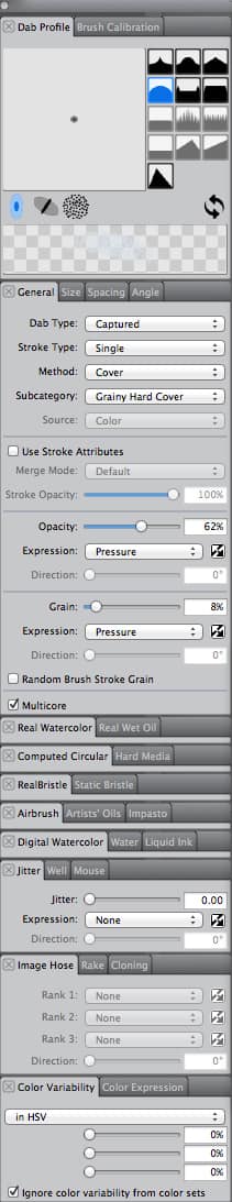 Another of my favorite brushes is a variation of the palette knife. Normally, this one does a lot of smearing in its default setting, but we're switching it around so that it actually paints.
