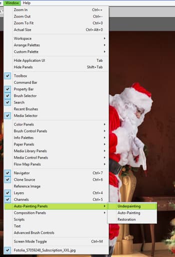 We are now going to use the fantastic Auto-Painting feature in Corel Painter 2015 to turn our image into a painting. Go to Window > Auto-Painting Panels > Underpainting.