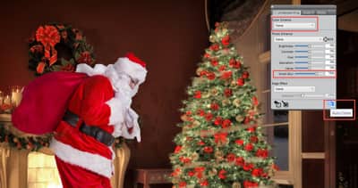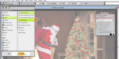 Click on the Restore tab, and using either the Soft Edge- or Hard Edge Cloner brushes, bring back some of the image detail to the painting. Here, I have gone over the baubles, around Santa's contour, and also brought back details of his face.