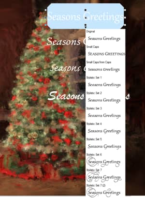 Select the text in one of the text panels, and replace with the greeting that you are going to use on your card - in my case "Seasons Greetings".