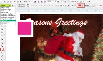 I could add text now in Corel Painter using the Text tool, but because I want to compare different fonts to use in my project and perhaps add some artistic effects or additional pages to my card, from here on I will be working in CorelDRAW.