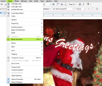 However, now that I'm done, I no longer need this curve, so I just go up to my Object menu and choose Break Text Apart (Ctrl+K). I can now delete the path.