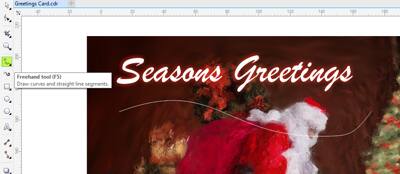 The last thing I would like to do is to give my text more personality by having it follow a curved path. To do this, I select the Freehand tool (F5), from the Toolbox and draw a simple curved line (I used a right-click on the white color swatch to make the line more visible).