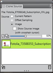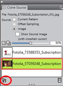 After loading, the Santa image will now appear as a clone source in my Clone Source panel.