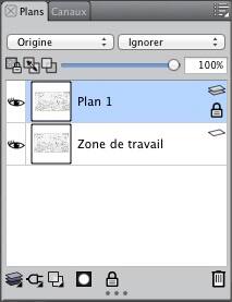 Puis, dans la fenêtre Plans de l'espace de travail, il faudra cliquer sur le bouton en forme de cadenas pour éviter d'y dessiner accidentellement.