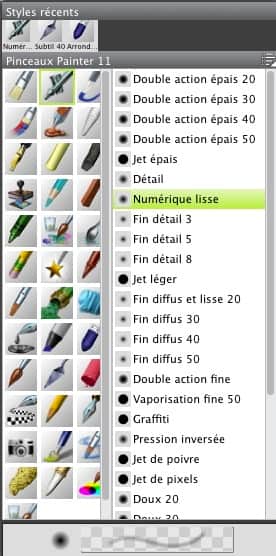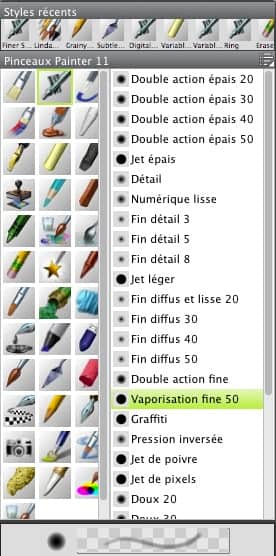 En bien, avec le pinceau Pastel gras, l'aérographe Jet léger, l'outil Éponge et le couteau à palette, on a un bel ensemble de moyens propres à créer une grande variété de traits les mieux harmonisés.
