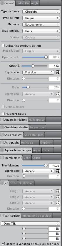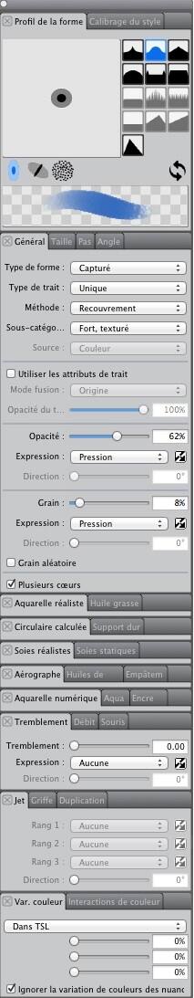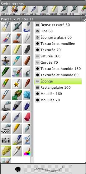 Maintenant que la peinture a pris un certain élan, on va enfin faire ressortir de la texture. J'aime tous les pinceaux prédéfinis que propose Painter et les utilise souvent, mais rarement sans les modifier quelque peu.