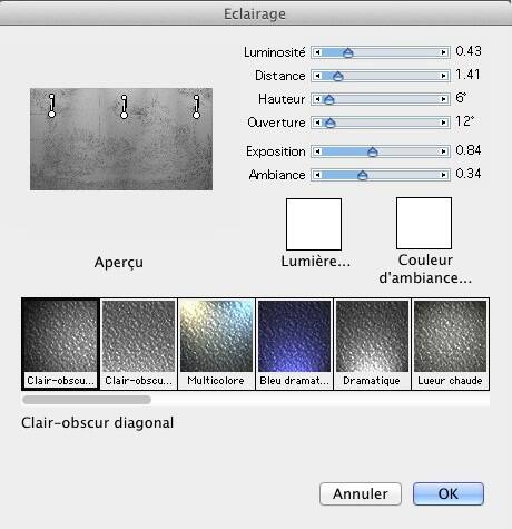 Pour commencer, on va appliquer de la lumière à toute l'image en cliquant sur Effets > Surface > Éclairage.
