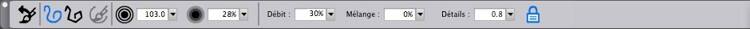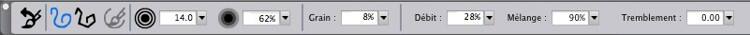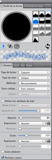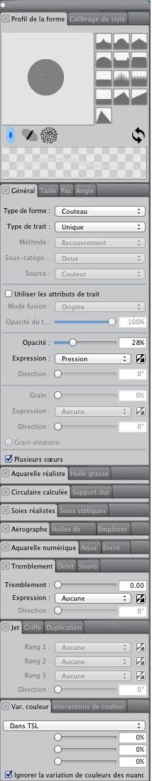 Le couteau à palette, défini à dessein, figure aussi parmi mes pinceaux préférés. Normalement, dans sa configuration par défaut, il fait beaucoup de bavures, mais on va en modifier le rendu de sorte qu'il peut peindre.