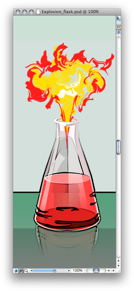 4. "レイヤー 1" の下に "レイヤー 2" を作成します。"レイヤー 2" では、爆発の中心部分を適当なブラシで黄色く塗り潰し、適度に "ハリケーン" バリアントでかき混ぜておきます。