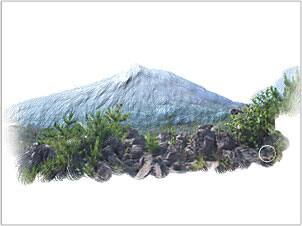山と岩を大まかに描きましたら、再びブラシのサイズを少し小さく設定して、インクを重ねて盛り上げていきます。