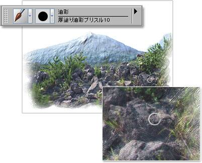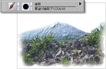 山を描くためのブラシを設定します。ここでは[油彩]ブラシカテゴリの[厚塗り油彩ブリスル10]を選んでいます。
