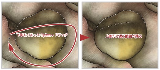 Optionキー(Windows : Altキー)を押した状態で水滴の下側をぐるっと選択します。