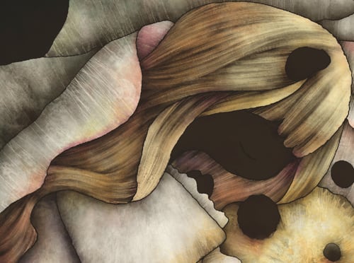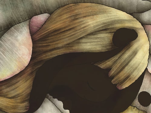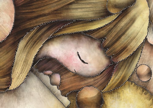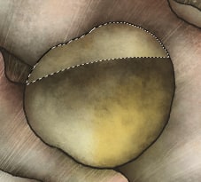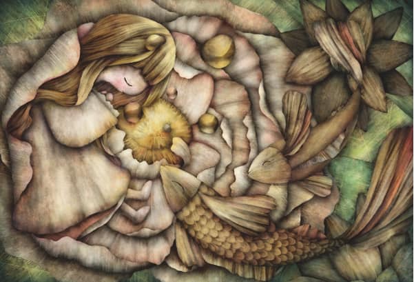 髪の毛を描いたときと同様、細いスポンジでうろこを一枚ずつ描き込みます。