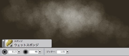 最後にウェットスポンジで明るい部分を一気に飛ばします。